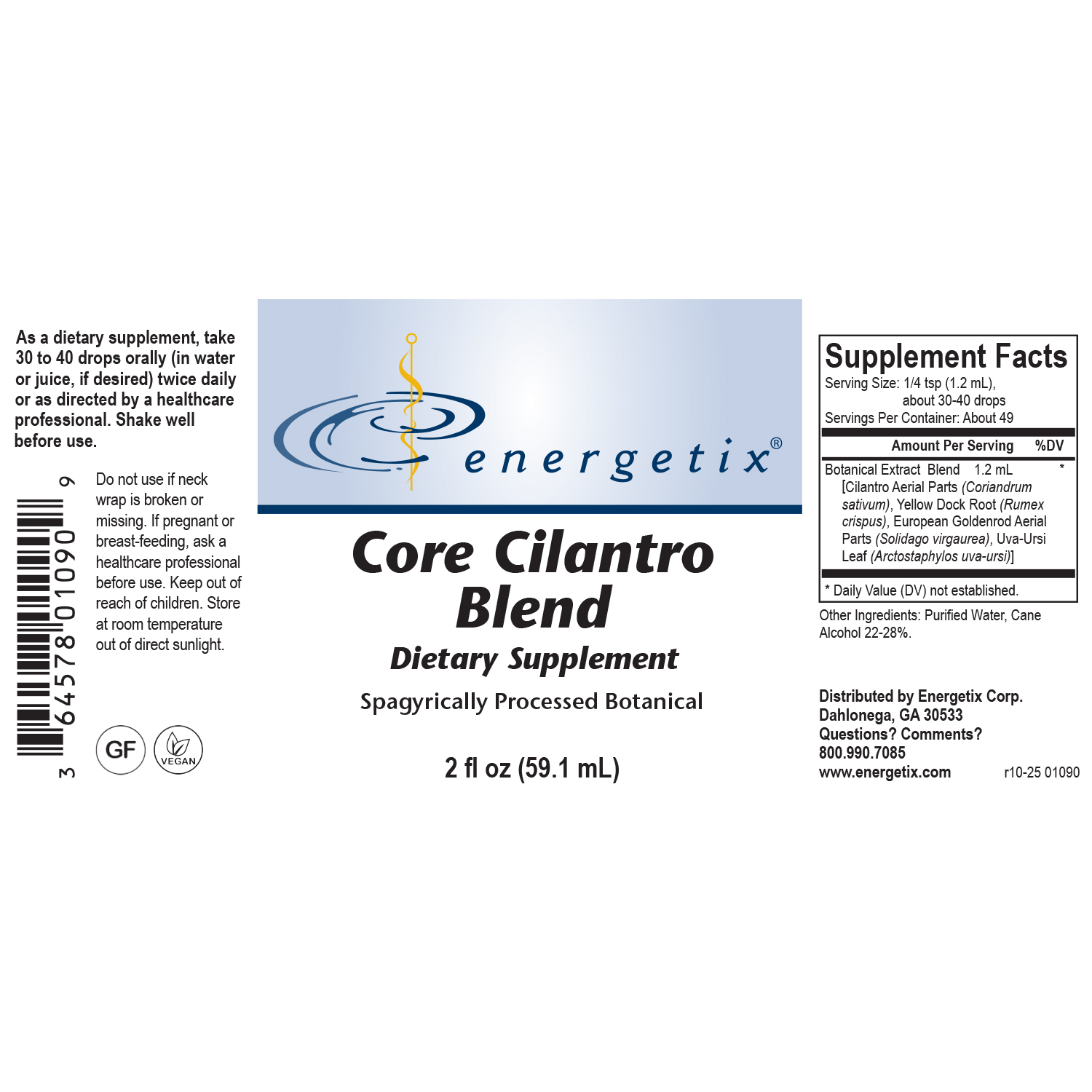Cilantro Aerial Parts (Coriandrum sativum), Yellow Dock Root (Rumex crispus), European Goldenrod Aerial Parts (Solidago virgaurea), Uva-Ursi Leaf (Arctostaphylos uva-ursi).